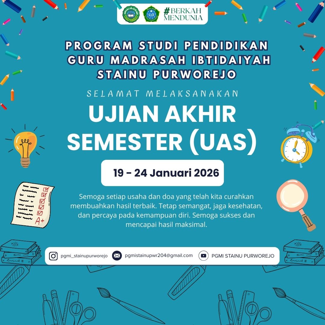 Pelaksanaan ujian akhir semester ganjil tahun akademik 2025/2026 mulai pada tanggal 19 s/d 24 Januari 2026.